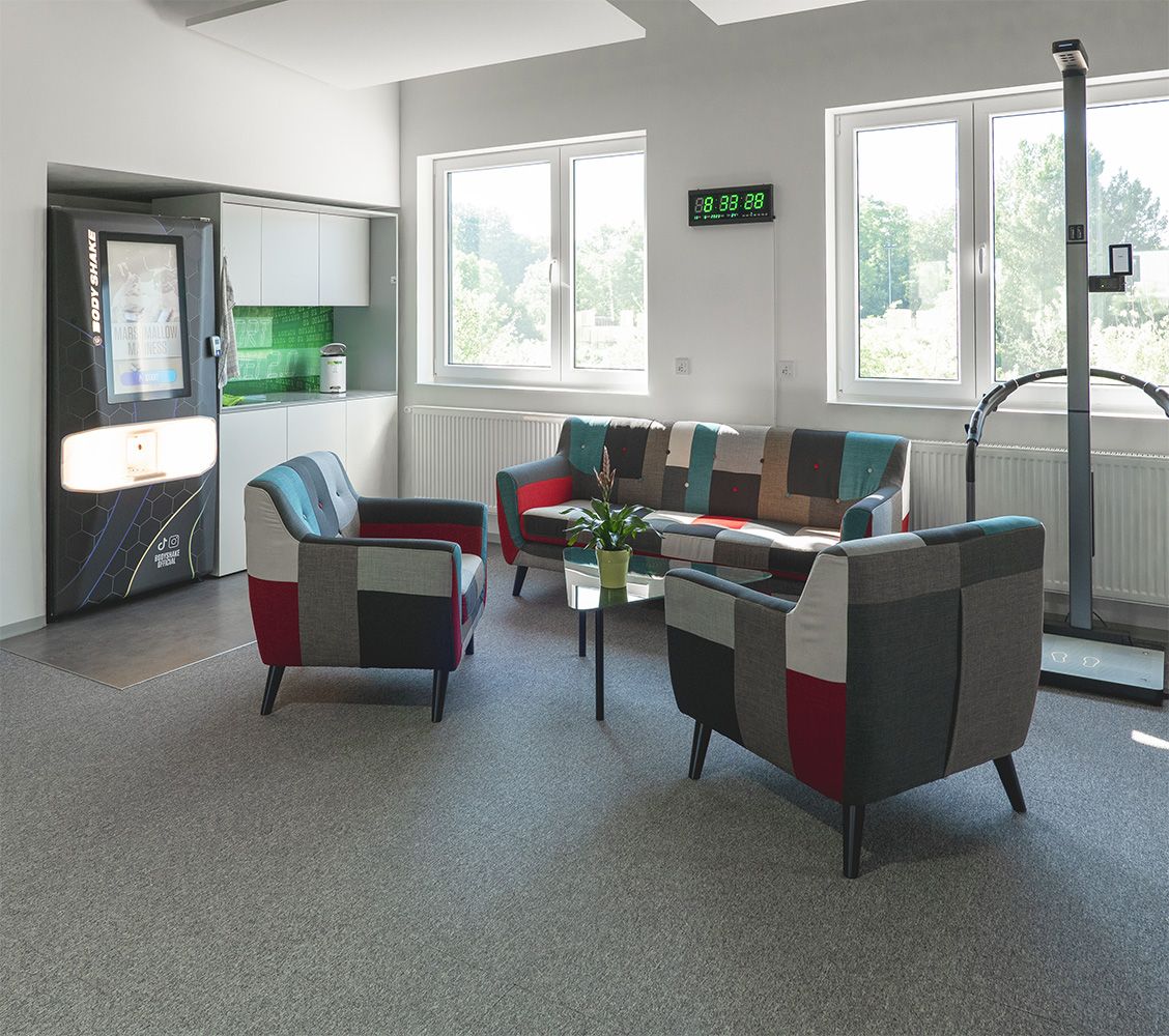 Angefangen von der neuesten Körperanalyse Waage, die DEINEN Muskel- und Fettanteil misst - weiter mit den innovativen Fitnessgeräten von EGYM, mit denen DU wirkungsvoller, abwechslungsreicher trainierst und dem einzigartigen, individuell mixbaren Proteindrinksystem von Bodyshake mit leckeren Geschmacksrichtungen und einstellbaren Eiweißanteil DEINER Wahl.